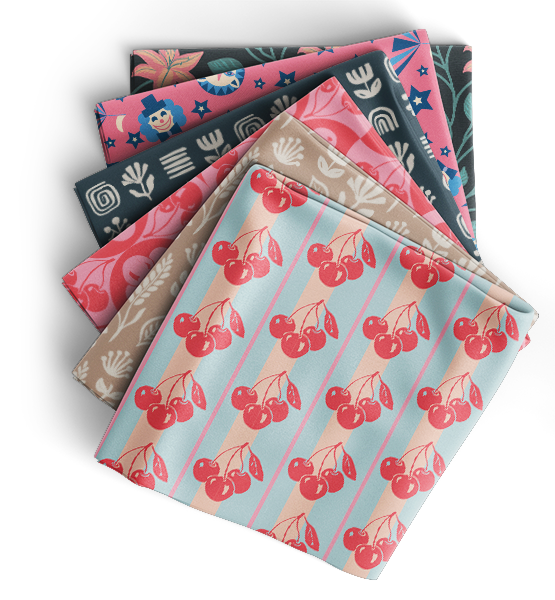 I create vibrant surface patterns – sometimes playful and expressive, sometimes clean and minimal. Always with the aim of bringing joy and character to products.